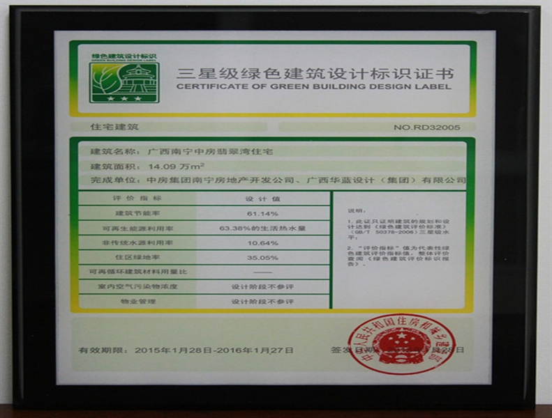 • 翡翠灣榮獲三星級綠色建筑設計標識證書