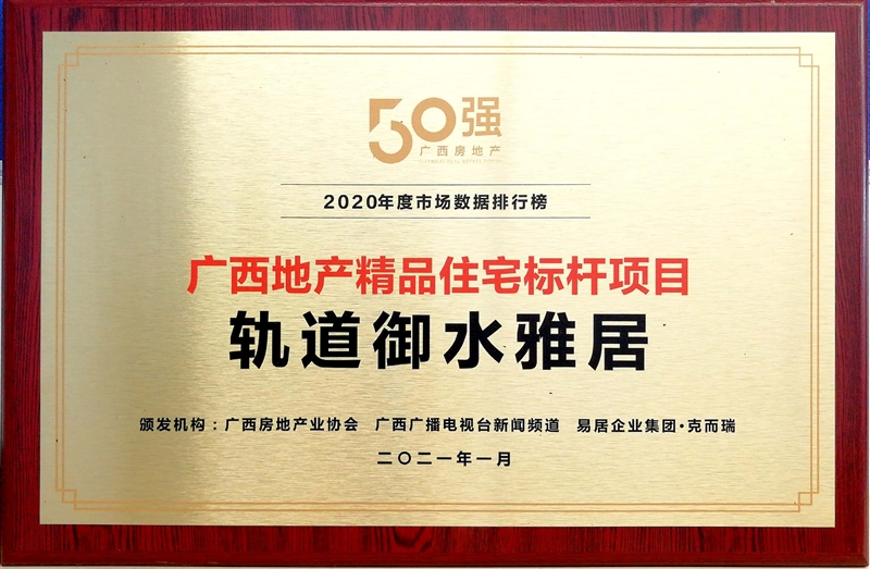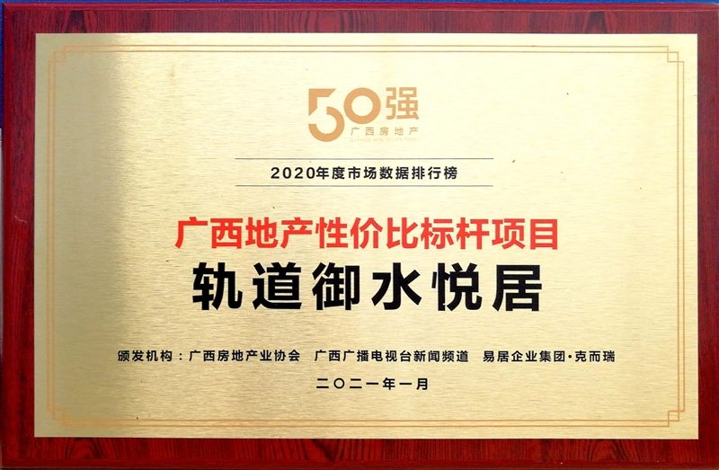 • 軌道御水悅居獲得廣西地產(chǎn)性價比標桿項目稱號