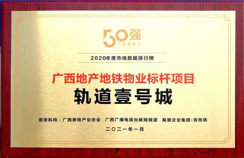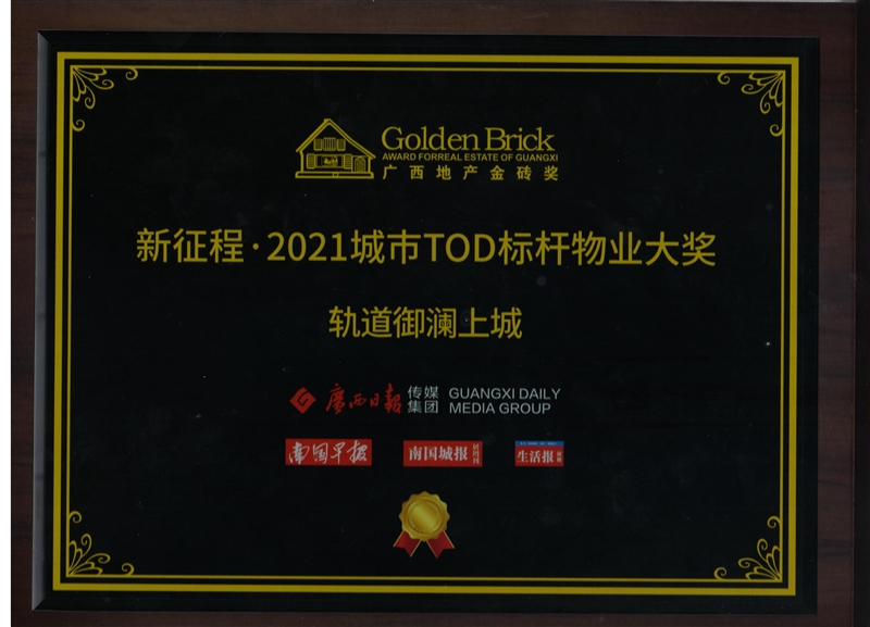 • 軌道御瀾上城項目獲得廣西地產(chǎn)金磚獎“新征程·2021城市TOD標桿物業(yè)大獎”