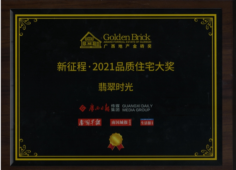 • 翡翠時光項目獲得廣西地產(chǎn)金磚獎“新征程·2021品質(zhì)住宅大獎”