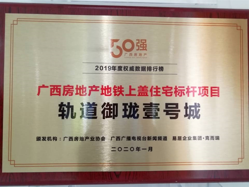 • 軌道御瓏壹號城獲得廣西地產(chǎn)金磚獎2020成長價值樓盤大獎