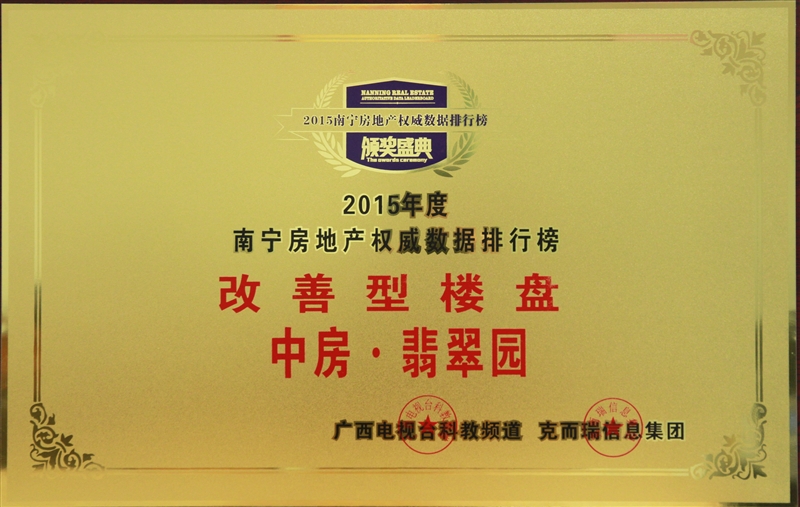 • 中房翡翠香頌榮獲2015年區(qū)域標桿名盤