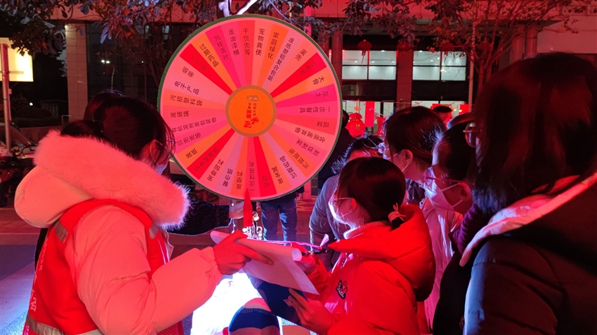 紅火的燈籠掛在枝頭,濃濃的年味已在廣場(chǎng)上蔓延,燈籠上懸掛有節(jié)日燈謎以及黨的二十大知識(shí)、民族團(tuán)結(jié)知識(shí)、廉潔知識(shí)、垃圾分類知識(shí)、安全生產(chǎn)知識(shí)的題目。大家三五成群看謎面、猜謎語(yǔ),沉浸在猜謎解謎的樂(lè)趣中。這種寓教于樂(lè)的方式,充分調(diào)動(dòng)了大家學(xué)習(xí)的興趣,大大提高了黨員教育的實(shí)際成效。