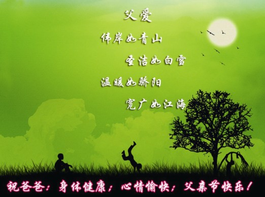 每年的6月第三個(gè)星期天就是父親節(jié),從來就沒跟老爸表示過什么,從小老爸對(duì)我的愛一直都是默默地,無言的,深沉德,不記得有多少次的細(xì)節(jié)讓我感動(dòng)。
